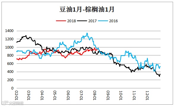 2、多豆油空棕榈油的套利策略建议关注,待回调后逢低买入