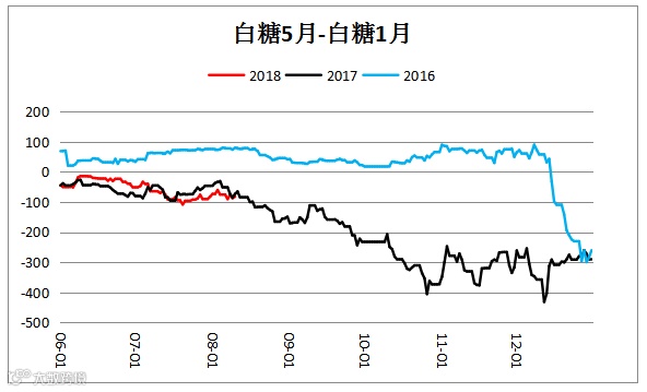 白糖跨期价差(SR1905– SR1901)小幅震荡,建议观望。