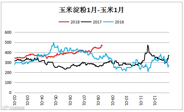 玉米淀粉玉米价差(CS1901 – C1901)震荡上行。