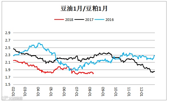 1、发改委发文提出将调低饲料中蛋白的含量,此举将抑制豆粕的需求。以此同时,豆油受中秋节节前备货的影响,需求得到一定程度的支撑。建议关注买豆油抛豆粕的套利策略。