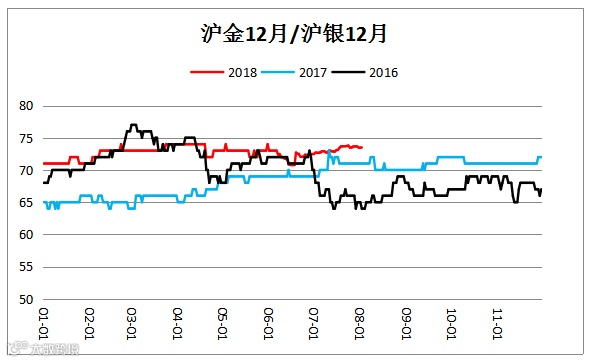 伦敦金银价比,沪金沪银价比(AU1812 / AG1812)区间震荡,未来行情有待观望。