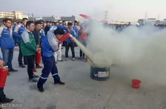 8点45分,公司全员集中在后道北面广场,各部门主管清点人数,所有人员安全撤离!随后,公司EHS对叶片公司全体员工进行消防知识培训并演示了消防水带、灭火器的使用方法,指导各部门员工代表使用灭火器灭火。