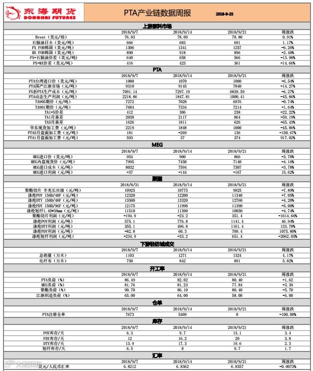 以下数据为东海期货研究所整理的产业链数据周报,快来看看吧!