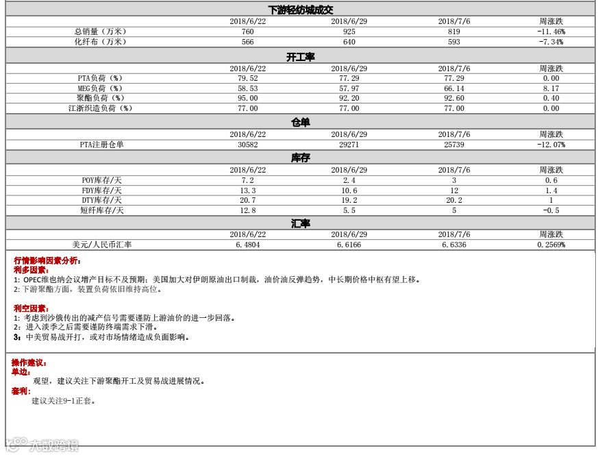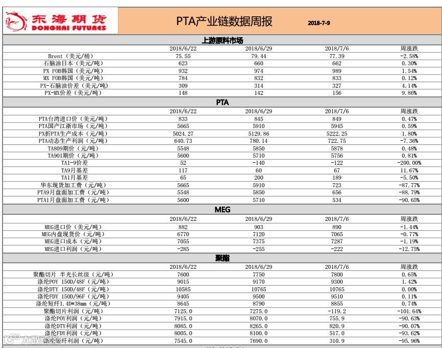 PTA产业链数据周报(2018.07.09)