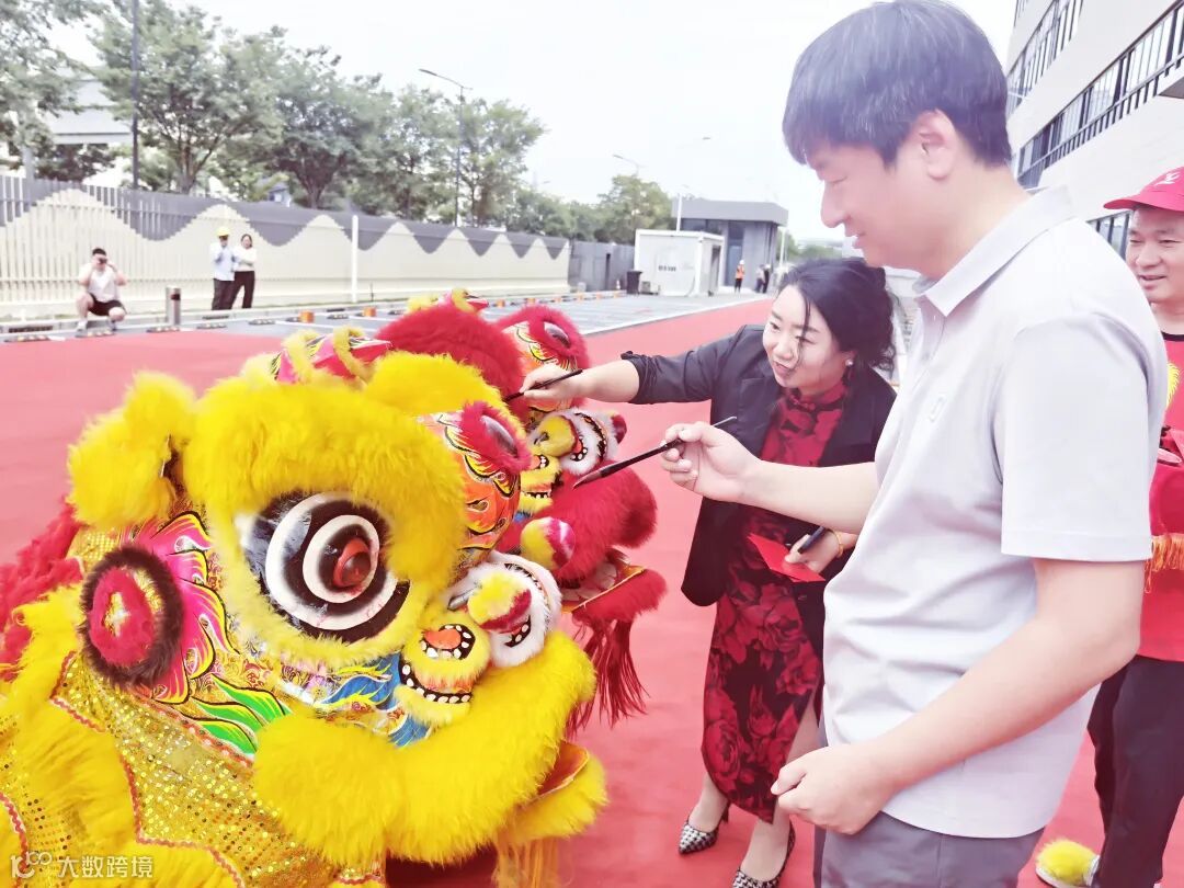 仪式现场,王刚董事长与刘晓宇总经理共同为祥狮点睛,伴随激昂的鼓声,祥狮腾跃而起,采青纳福。当生菜化作“金雨”洒落,寓意“遍地生财、事业长青”。随后,祥狮引领嘉宾进入厂房巡游,为生产一线带来吉祥祝福。