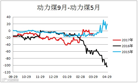 动力煤跨期价差(ZC1809 – ZC1805)震荡,建议观望。
