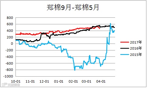 棉花跨期价差(CF1809– CF1805)区间震荡,未来行情有待观望。