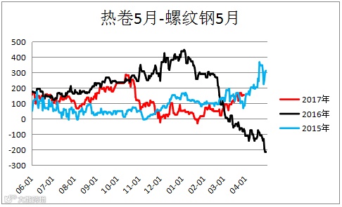 热卷螺纹钢价差(HC1805 – RB1805)震荡反弹,建议观望。