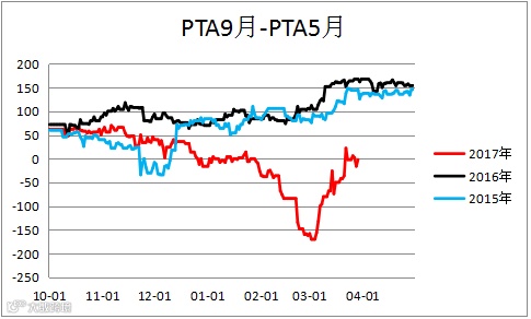 PTA跨期价差(TA1809 – TA1805)价差修复,建议观望。