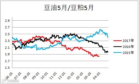 2、 油粕比震荡,市场整体上呈现外强内弱,粕强油弱的格局,油脂基本面压力始终没有得到有效缓解,建议进行买粕抛油的套利操作。
