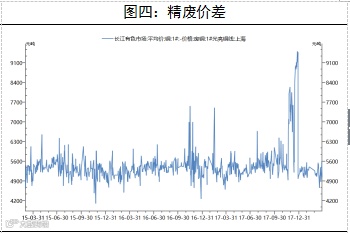 此外,由于废铜进口政策趋紧,2018年以来国内的废铜进口下降明显。3月23日海关总署公布数据显示:2月我国进口废铜13万吨,环比下降35%,同比下降超过50%;1-2月累计进口达33万吨,累计同比下降40%。受废铜供应收紧影响,今年以来精废价差持续低位。废铜进口的减少将从客观上增加对冶炼产能的需求,未来或进一步压制加工费的走势。后续随着国外废铜处理能力的提升,国内进口量也将逐步复苏,需持续保持关注。