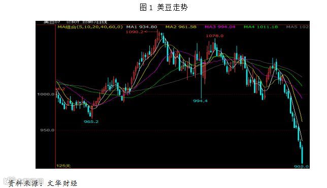 正因如此,就在6月15日白宫对中美贸易发表声明,宣布对500亿商品征收25%关税后,市场对中美贸易战可能威胁到美国大豆出口担忧情绪再度升温,因之前美国最初挑起贸易战到两国进行第一轮谈判期间中国所做出的相关举动(大幅削减美豆进口),就是前车之鉴。外围期货市场也是率先开盘就有反应,美国商品期货普遍下跌,美豆大跌将近2.5%。其中7月合约最低下探至903美分,尾盘收报于905.5美分,距离900美分大关也仅仅是一步之遥。