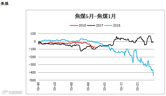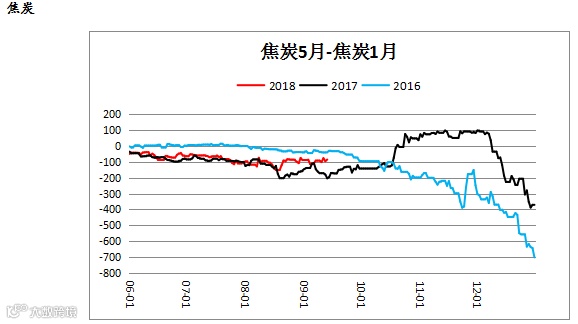 焦煤跨期价差(JM1905 – JM1901)震荡下行,建议观望。