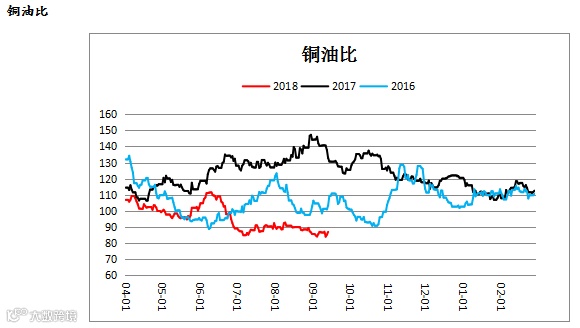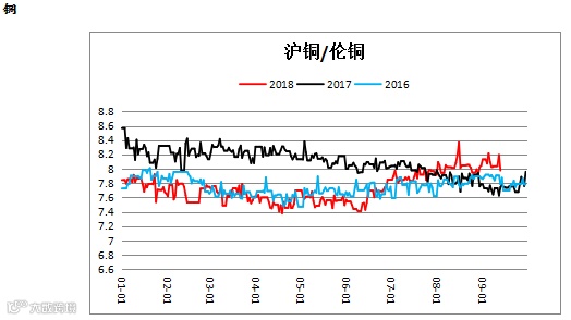 沪铜伦铜比(CU1810/LMES-铜3)区间震荡。