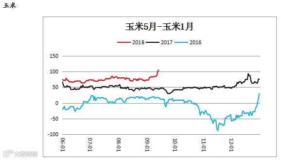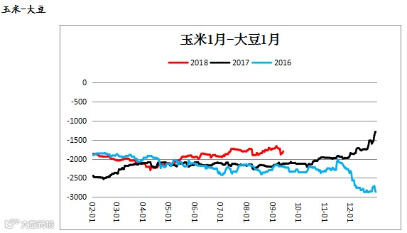 大豆跨期价差(A1905– A1901)小幅震荡。