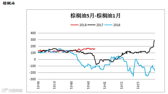 棕榈油跨期价差(P1905 – P1901)小幅震荡。豆油跨期价差(Y1905– Y1901)区间震荡。