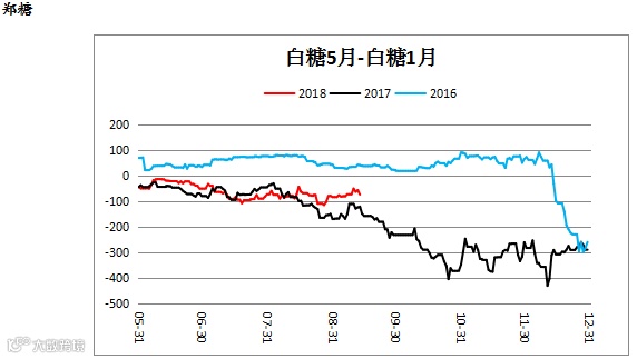白糖跨期价差(SR1905– SR1901)区间震荡,建议观望。