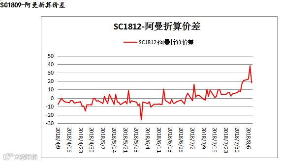 上期所SC1812收盘价与阿曼原油价差震荡下行。