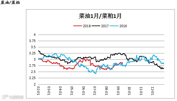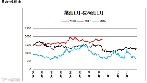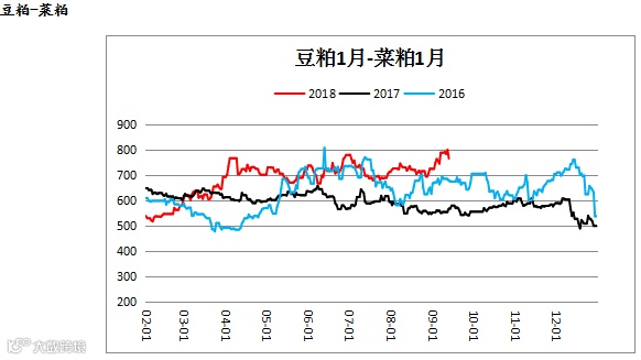 菜油菜粕价差(O1901– RM1901)价差震荡上行。
