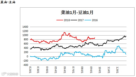 菜油棕榈油价差(OI1901 – P1901),菜油豆油(OI1901 – Y1901)价差区间震荡,建议观望。