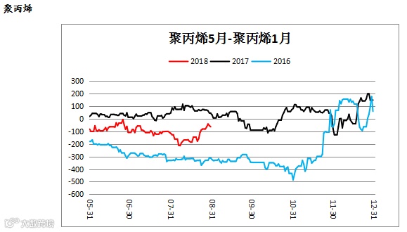 聚丙烯跨期价差(PP1905 – PP1901)震荡上行。