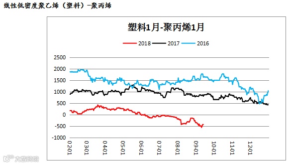 塑料聚丙烯价差(L1901– PP1901)震荡下行,未来行情有待观望。
