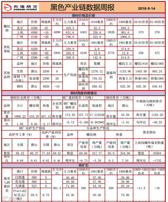 黑色产业链数据周报20180917