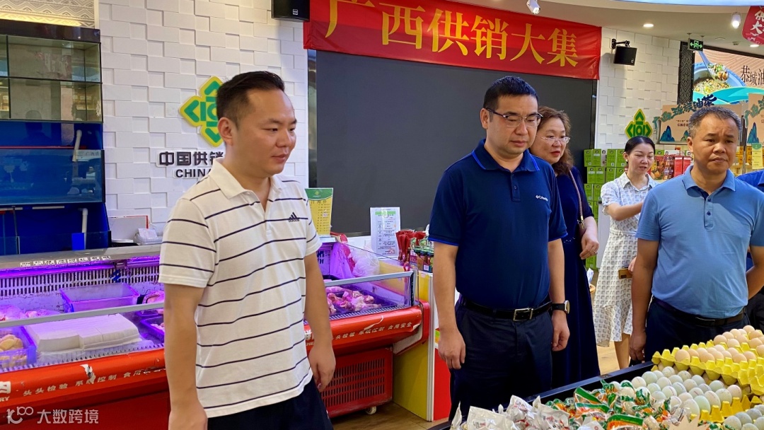 来访一行先后参观了广西供销农产品电商运营中心、名特优农产品展销中心和三鹤六堡茶展厅,对“供销大集”平台产品的多样化和品牌化运营模式给予高度评价。