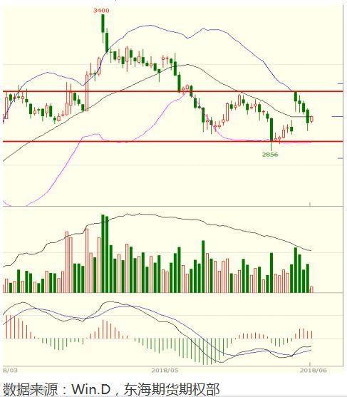 上周豆粕期货主力合约M1809较上周涨幅1.12%,收盘于2968点,成交量以及持仓量分别达到6738624手和1761910手。技术面上看,豆粕主力上周高开低走,最终在3000附近寻得支撑,并开始小幅反弹,整体趋势维持箱体震荡格局,其中上沿3100,下沿2900。