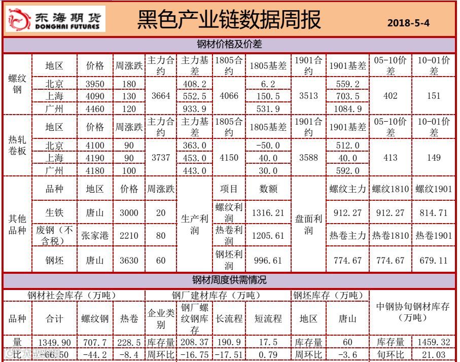 黑色产业链数据周报(20180504)