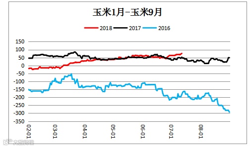 玉米跨期价差(C1901– C1809)小幅震荡。