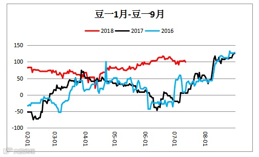 大豆跨期价差(A1901– A1809)小幅震荡。