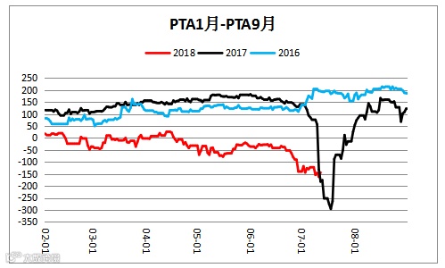 PTA跨期价差(TA1901 – TA1809)震荡下行,建议观望。