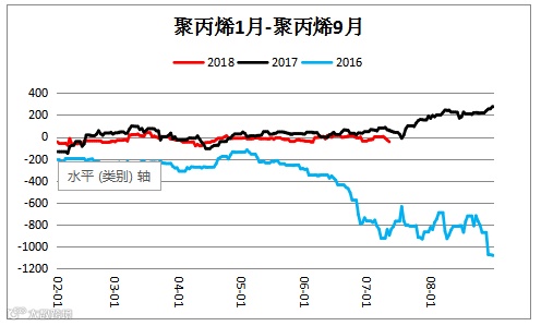聚丙烯跨期价差(PP1901 – PP1809)小幅震荡。
