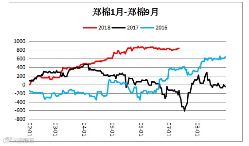 棉花跨期价差(CF1901– CF1809)小幅震荡,未来行情有待观望。