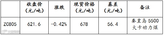 昨日动力煤主力合约ZC805开盘于632.2元/吨,最高635元/吨,最低623元/吨,报收于624.2元/吨。较前一交易日下跌8.2元/吨,跌幅为-1.3%。