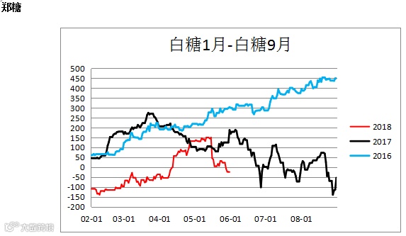 白糖跨期价差(SR1901– SR1809)震荡下行,建议观望。