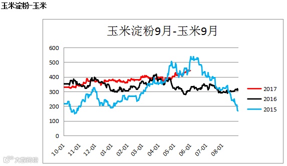 玉米淀粉玉米价差(CS1809 – C1809)小幅上行,建议关注多玉米空玉米淀粉的操作。