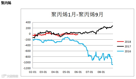 聚丙烯跨期价差(PP1901 – PP1809)小幅震荡。