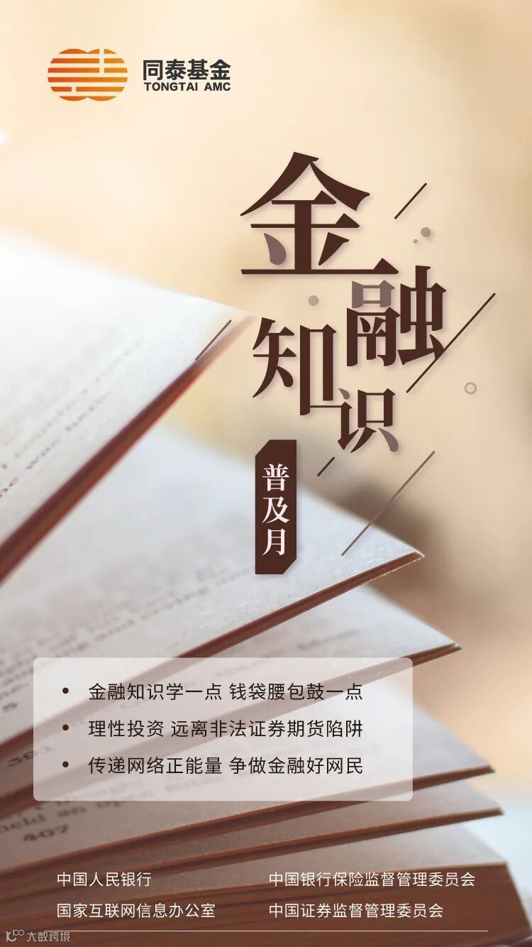 为引导投资者树立正确的投资理念,提高风险意识和识别能力,同泰基金积极响应号召,并于2020年9月起开启以“金融知识进万家 争做理性投资者 争做金融好网民”为主题的金融知识普及月活动。