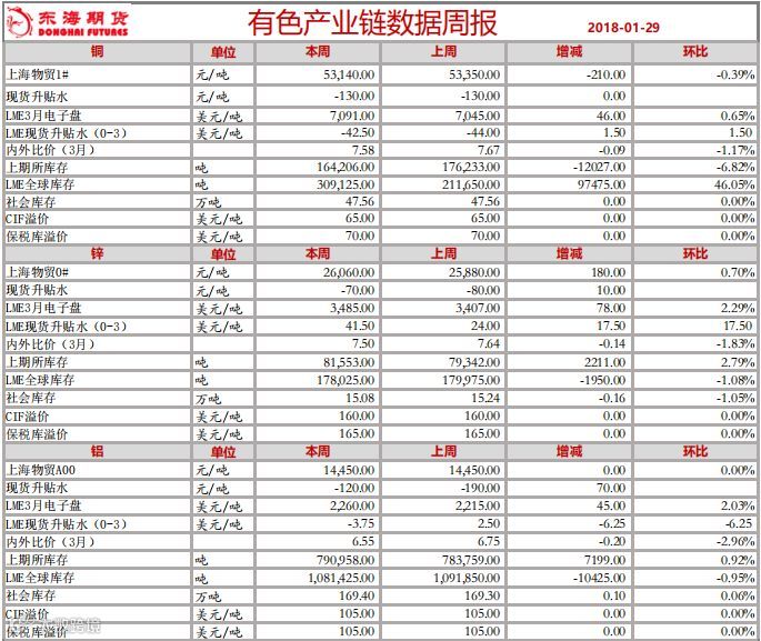 有色产业链数据周报(2018.01.30)