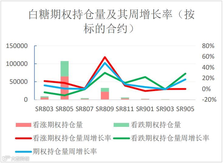 白糖期权 9 月合约持仓总量上升明显,周增长 48.18%。