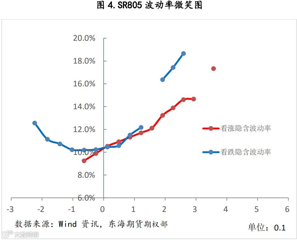 主力合约波动率微笑如下图所示。总体呈现左低右高形态,在不考虑流动性影响条件下,市场对后市反弹的预期更大。