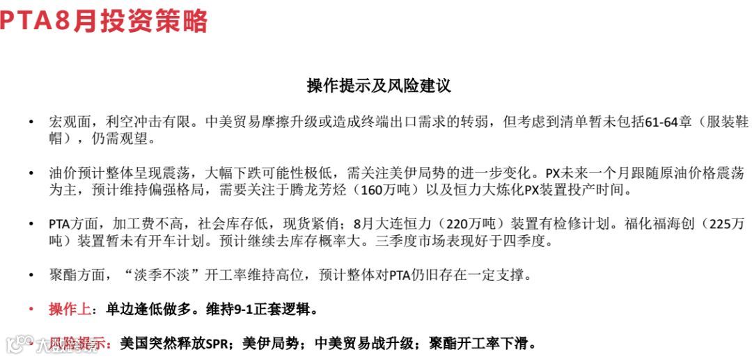 导读:PTA8月月度投资策略:库存低需求旺,正套逻辑延续