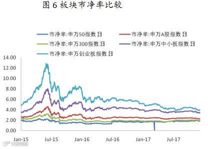 可以看出在良好业绩支撑的逻辑条件下,上证50的估值得到明显提升,但中小创板块估值明显回落,但是市盈率依然高于大蓝筹板块。在去杠杆、金融监管趋严背景下,资金抱团蓝筹消费,二八行情明显,中小创板块集体遇冷。预计未来2018年资金配置格局延续,仍然会偏爱低估值、业绩良好的龙头企业,中小创中获业绩支撑的优质企业或面临新机遇。