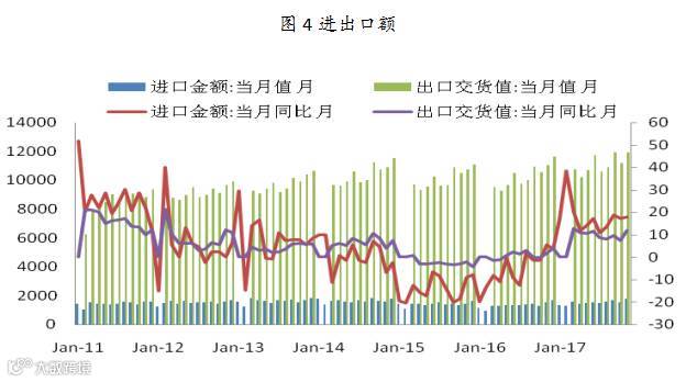 其次,特朗普大力推行减税政策。美国众议院、参议院相继通过税改方案,可以说是特朗普上台后施政的一项实质性突破。两院所通过的草案主要不同在于下调企业税率是从2018年或是2019年开始。税改法案通过,短期内将刺激美国经济发展。首先个人税的降低将增加居民收入,从而提振消费,而消费对于美国经济贡献巨大,所以有利于拉动美国经济增长。其次税改法案中对于企业税的下调将降低企业的负担,从而使企业拥有更多资金进行投资,对于跨国公司,将有利于把更多利润回流至美国本土,拉动美国国内的企业投资和就业。当然,税率降低会直接导致财政收入减少,但税率降低刺激经济增长将带来税基提高的正面影响。实施减税后,美国进口增速或大幅抬升。