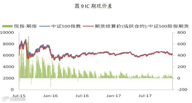 2015年大起大落,2016经历了熔断式暴跌后,逐步步入平稳,2017年慢牛行情延续至今。2017年以来,A股呈现V形走势,年初由于大宗商品陆续见顶回落,PPI见顶,补库周期结束,经济数据超预期支撑,再加上“雄安”概念横空出世,A股经历了一波涨幅,但随后市场流动性收紧、金融监管加码,A股回落探底,6月以后,产业资本大量增持、周期股引领市场大涨,流动性、监管边际变化,A股开始不断攀升,直到年底略有回落。具体来看,2017年A股走势分化明显,一方面,权重股V形反转,强势上攻,中枢不断上移,上证50指数、沪深300指数,年内累计涨幅均超过30%,另一方面,中小创相对弱势,呈现宽幅震荡格局。与此对应,IH、IF与IC走势分化明显。我们预计2018年经济增速预期下行,经济稳中趋缓,债务、利率和财政支出压力将对股市盈利增速产生压制,资管新规指导意见对估值构成利空,其落实以及细则出台可能在明年二三季。