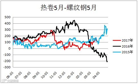 热卷螺纹钢价差(HC1805 – RB1805)震荡反弹,建议观望。