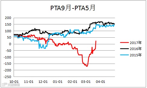 PTA跨期价差(TA1809 – TA1805)价差修复,建议观望。