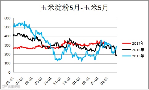 玉米淀粉玉米价差(CS1805 – C1805)震荡,建议观望。